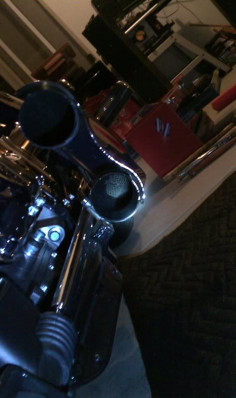 I found a few minutes to pull the mufflers and drag out a flashlight and my cameraphone. At night.